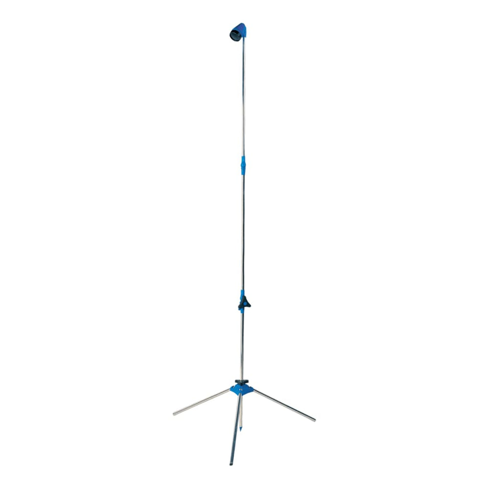 La ducha portátil tiene 160 cm de altura. Es estable gracias a la pluma terrestre y a la base del trípode. La instalación es fácil. Conecte la ducha a una manguera de jardín con la conexión de la manguera. Nota: La ducha de piscina solo está destinada a usarse con agua fría.