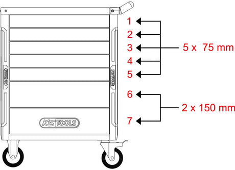 Ks tools tool trolleys bt 7 drawers, 207 pcs.