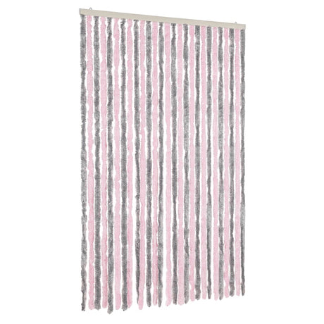 Vidaxl fly curtain 118x220 cm chenille silver-grey and pink