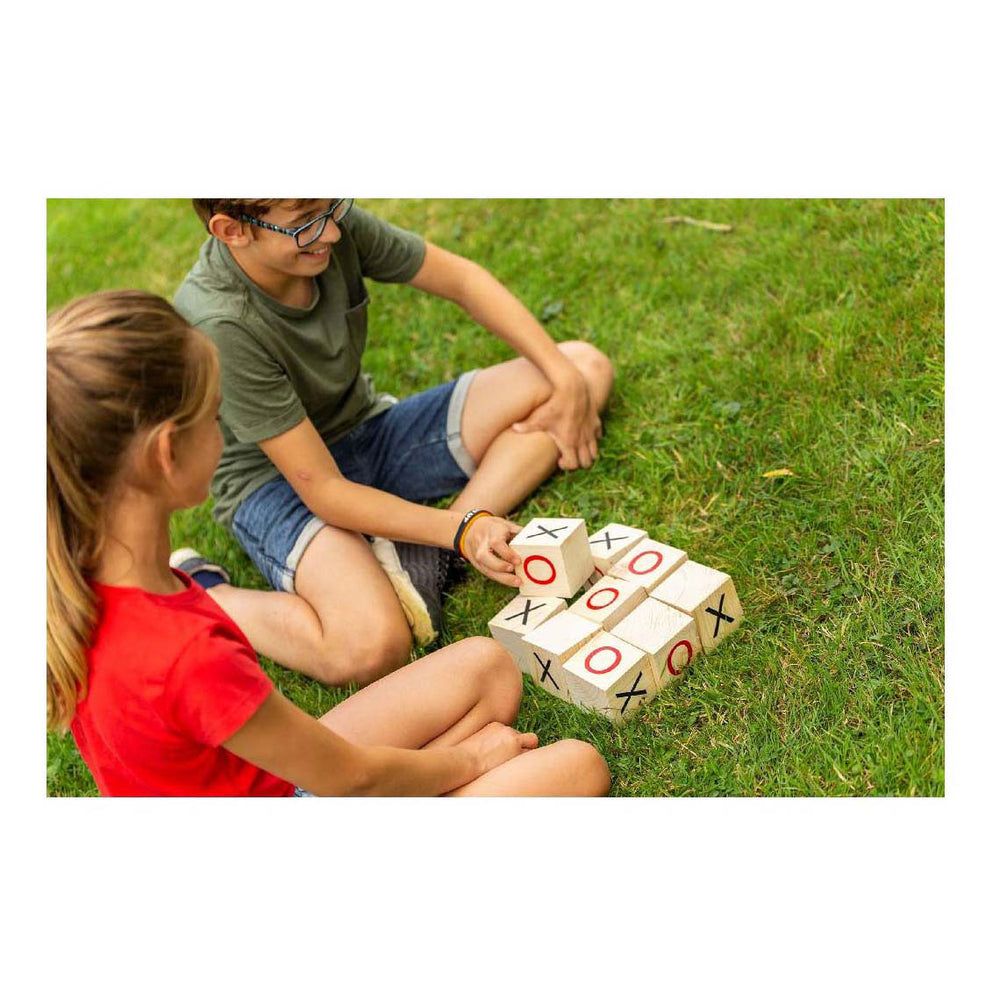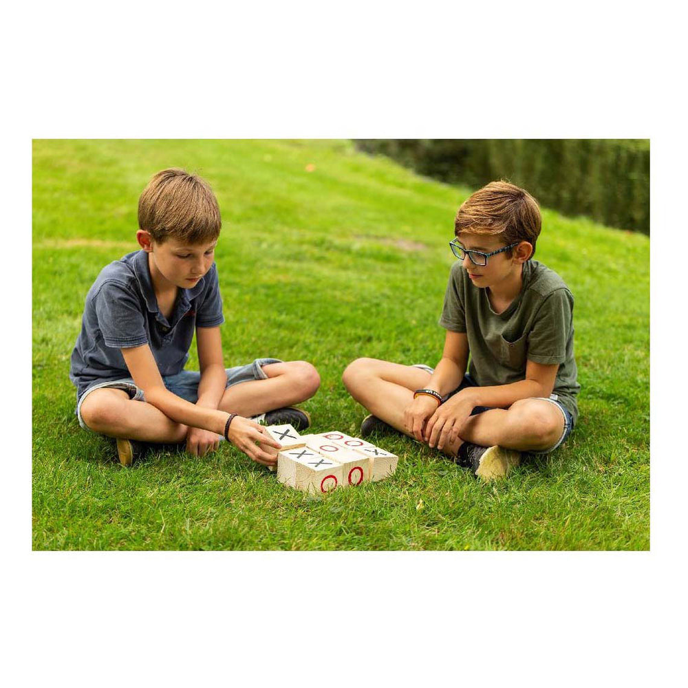 Who is the first to have 3 crosses or 3 laps in a row? Content: 9 wooden blocks with circles and crosses depicted on top. The wooden blocks are 7 x 7 x 7 cm in size. Suitable for children from 5 years. Outdoor Play Garden Tic TAC. Who is the first to have 3 crosses or 3 laps in a row? Content: 9 wooden blocks with circles and crosses depicted on top. The wooden blocks are 7 x 7 x 7 cm in size. Comes in FSC box with extensive manual. Suitable for children from 5 years.