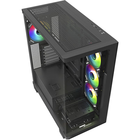 Sharkoon elite shark ca500 midi tower behuizing (zwart | 2x usb-a | 1x usb-c | rgb | tempered glass)