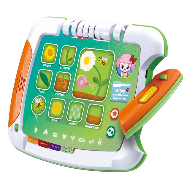 Tämä 2 in 1 tabletti on täydellinen lukemiseen ja oppimiseen! Se sisältää 6 kaksinkertaista sivua tarinoilla ja aktiviteetteilla. Yksinkertaisella tablet -laitteen kierroksella voit vaihtaa leikkitilan 'aktiviteettien' ja 'tarinoiden' välillä. Näytelmissä 'tarinoita' voit kuunnella 6 seikkailunhaluista tarinaa pentuista. Voit myös pelata haastavaa hakupeliä. Tabletti tarjoaa hauskoja, koulutuspelejä kahdella vaikeustasolla. Voit tutustua tunteisiin, väreihin, muodoihin, eläimiin ja paljon muuta!