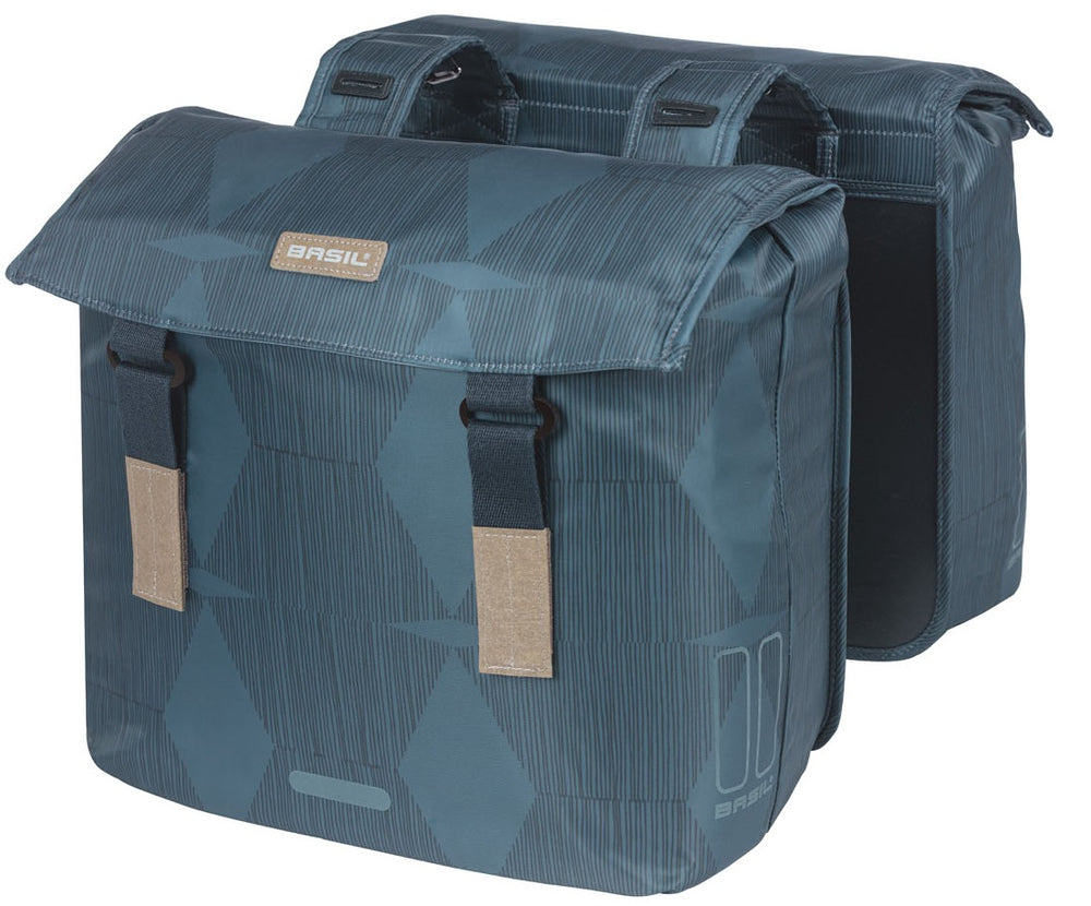 Basil Elegance Double Bicycle Sac, bleu, animal de compagnie recyclé, alimentaire, fermeture de conservation de l'eau, pont universel, 40-49L