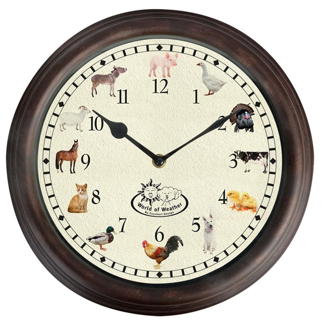 Sortez à l'extérieur avec cette horloge de conception de la conception Esschert qui joue un bruit d'animaux de ferme différent toutes les heures!