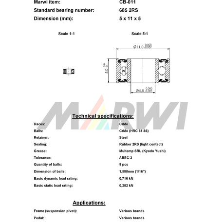 Marwi Union Kogellager CB-011 685 2RS 5X11X5