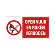 Plaque ouverte feu et tabagisme interdit - 150x300 mm.