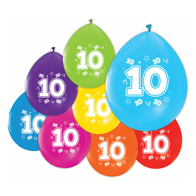 Cet ensemble contient 8 ballons colorés de 30 cm. Chaque ballon a un numéro 10 dessus.