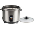 Cuiseur de riz en acier inoxydable d'une capacité de 1,8 litre, avec lequel vous pouvez cuire le riz parfait en un rien de temps. Le cuiseur à riz s'arrête automatiquement lorsque le riz est prêt.