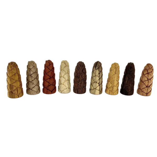 Bouts floraux coupés à la main de différents bois.