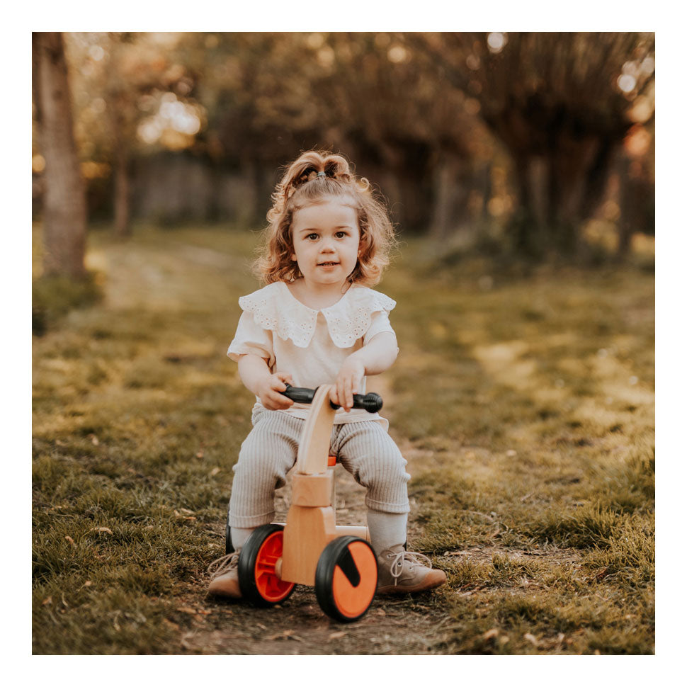 Ce joueur de course est parfait pour les enfants qui apprennent à marcher. Il a des roues en caoutchouc pour qu'il glisse silencieusement sur le sol. Avec les poignées en caoutchouc sur le volant et la construction solide, il offre une poignée robuste. Ce premier véhicule classique est idéal pour le développement de la motricité chez les enfants.
