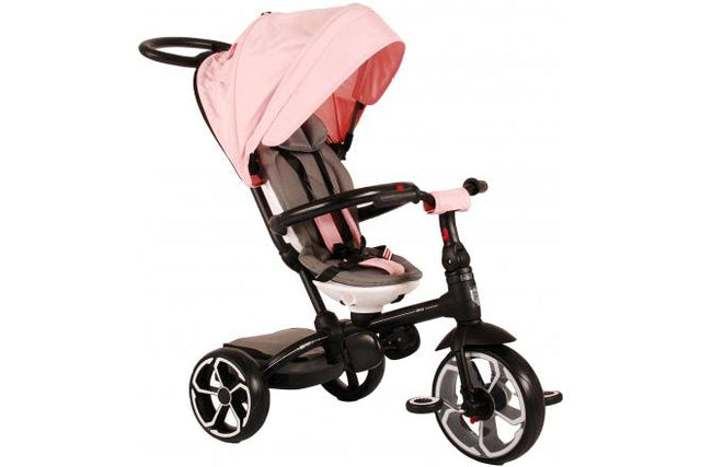 Le QPlay Tream 4-en-1 est un tricycle de luxe adapté aux enfants de 6 à 36 mois avec un poids allant jusqu'à 25 kilogrammes. Ce tricycle est équipé d'une barre de poussée télescopique réglable avec laquelle vous pouvez facilement guider votre enfant. Le tricycle a des ceintures de sécurité et une barre de sécurité pour la sécurité de votre enfant. De plus, le tricycle a un coussin de siège et un dossier réglable pour un confort supplémentaire. Avec une roue de 10 pouces à l'avant et deux roues de 8 pouces derrière, votre enfant peut déterminer la direction avec le volant. Les pédales ont une couche anti-glissement pour éviter de glisser des pieds. Il y a aussi un repose-pieds, un panier derrière et un capot qui peut protéger votre enfant contre le soleil et la pluie. Ce tricycle de bonne qualité assure beaucoup de plaisir lors des visites à pied.