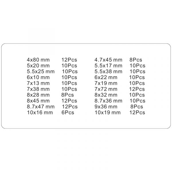 - Différentes tailles disponibles: de 4x80 mm à 10x16 mm