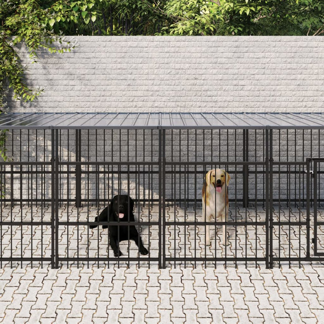 Vidaxl Chien Kennel avec toit 9,38 m² en acier