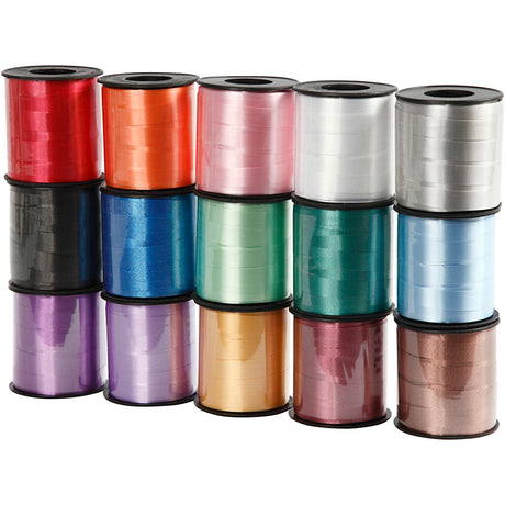 Creativ company gift ribbon, w: 10 mm, glossy, various colors, 15x50 m 1 box