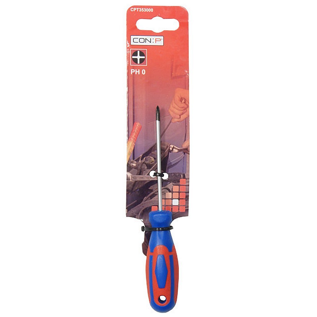 Con-P CPT353000 PH 0 Phillips screwdriver for PH screws. With ergonomic 2-component handle. With magnetic tip and hanging hole.