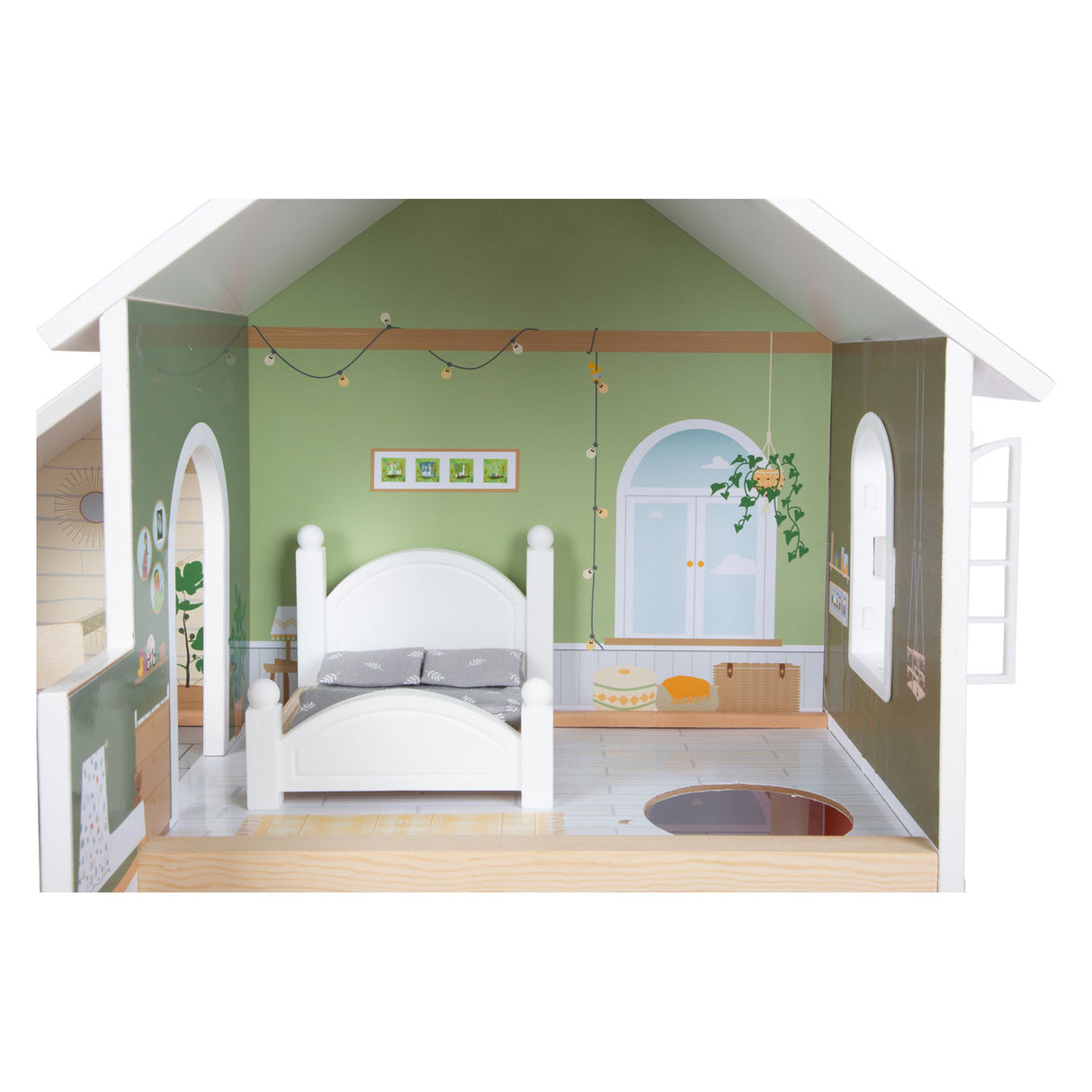 Déanann an dollhouse adhmaid nua -aimseartha seo le tosaigh oscailte tuiscint iontach le sonraí ealaíonta, variant maisiúla agus stíl nua -aimseartha taobh istigh.