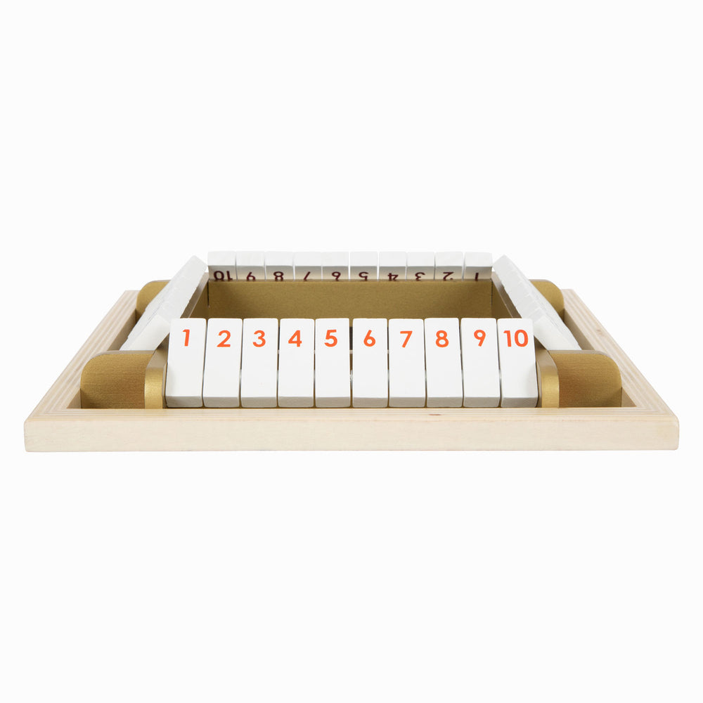 Ádh mór ar an dísle chomh maith le scileanna cluichíochta! Sa chluiche dísle clasaiceach seo i leagan mór ar feadh suas le ceithre imreoir, ní mór do gach imreoir iarracht a dhéanamh an oiread de na tíleanna cluiche uimhrithe agus is féidir a dhúnadh chun é a bhuachan! Is cluiche boird tapa é a bhfuil rialacha simplí aige agus is iontach an tsúil é freisin lena variant óir, dathanna trendy agus go leor adhmaid infheicthe.