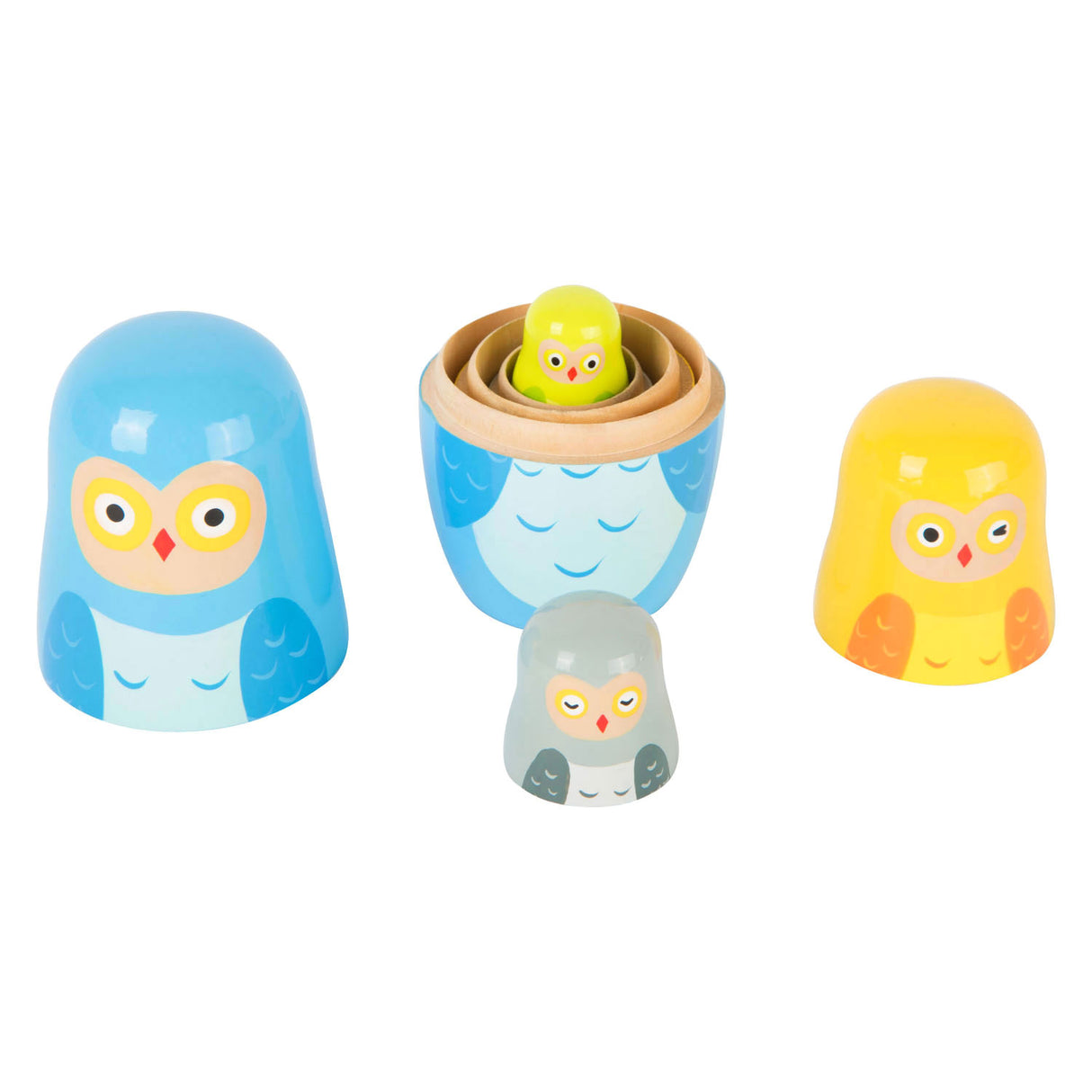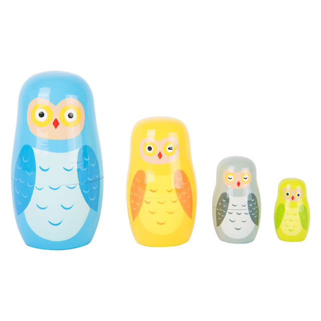 Teaghlach Owls Matryoshka adhmaid beag