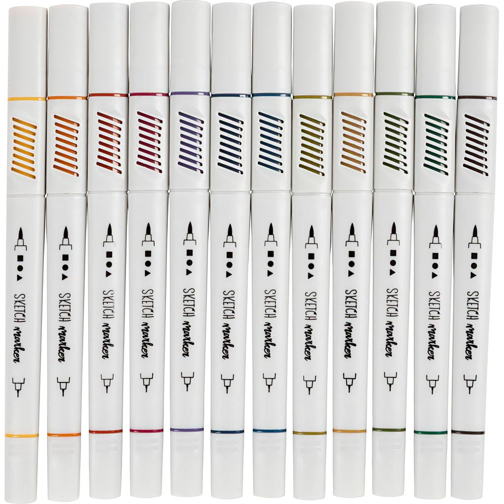 Pinn líníochta cuideachta Creativ, leithead líne 1+2-5 mm, dathanna pastel, 12 phíosa, 1 bhosca