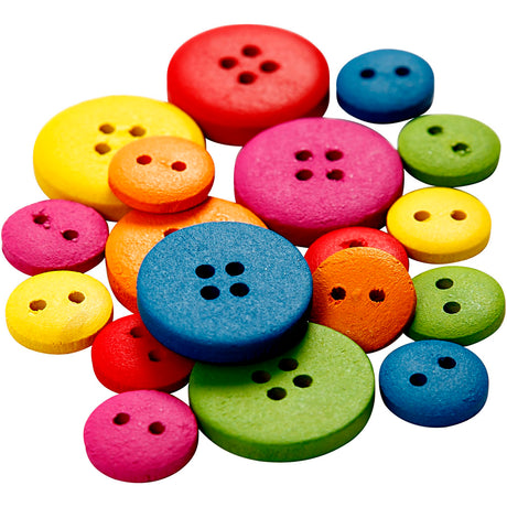 Creativ company houten knopen, d 12-20 mm, 2-4 gaten, diverse kleuren, 360 stuk 1 doos