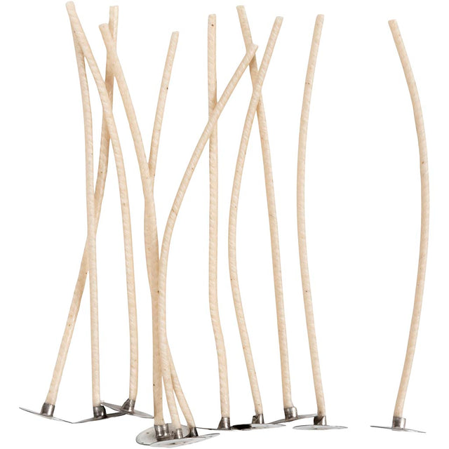 Wicks for candles in holder, suitable for holders with a diameter of 20-65 mm, l: 110 mm, thickness 2 mm, 10 pieces 1 box Raigned agus seoltar é chomh luath agus a bhíonn sé ar ais i stoc.