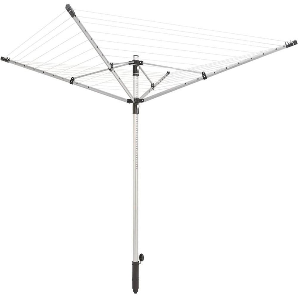 Tá spás ag an triomadóir le haghaidh 5 druma níocháin atá lán níocháin agus tá sé éasca le húsáid gan ach 1 ghluaiseacht. Is féidir 4 lámh an triomadóir a oscailt gan stró gan dul i ngleic leis na línte a bhuíochas leis an ardchóras oscailte. Is féidir airde an mhuilinn a choigeartú idir 1.35 agus 1.8 méadar. Tá iomlán de 12 crúcaí le haghaidh hangers éadaí scaipthe thar na 4 arm an mhuilinn, cuireann sé seo spás breise agus triomú saor ó wrinkle blúsléinte, léinte agus t-léinte. Cinntíonn na hairm tacaíochta cruach agus cuaille lárionad sturdy go bhfuil an triomadóir rothlach láidir, fiú nuair a bhíonn sé lán-ualach le níocháin.