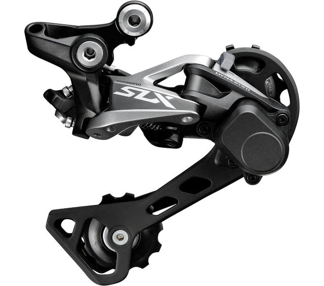 Is derailleur cúil é an SLX M7000 ó Shimano, atá oiriúnach do rothair sléibhe. Tá sé nuashonraithe le haghaidh tiomántáin le 11 luas agus tá Scáth -Scáth Shimano Plus le haghaidh cobhsaíocht agus coinneáil slabhra feabhsaithe. Tá an derailleur cúil seo curtha in oiriúint don rothaí le haghaidh lascadh géar agus réidh. Le meáchan de 323 gram, tá sé 20% níos éadroime i rialú lasc freisin. Tá uillinn fána optamaithe ag an dearadh scáth nua le haghaidh suíomh giaranna cobhsaí. Tá an derailleur ag athrú go héifeachtúil agus cinntíonn sé tiomáint níos fusa. Tá dearadh éifeachtach ag an roth derailleur fiacla agus tá an derailleur oiriúnach do shlabhraí comhoiriúnacha HG-X 11-luas. Is é an méid uasta fleasc fiaclóireachta ná 42T do luas 2x11 agus 46T do luas 1x11. Is é 40T an méid fleasc fiacail is lú. Tá toilleadh 41t ag an derailleur agus úsáideann sé an scáth-scáth den chineál earraigh is fearr RD+. Tá formáid GS ag an gcuairteoir ulóg agus tá fiacla 11T ag an roth derailleur. Tá an SLX M7000 mar chuid de shraith SLX M7000 agus tá dath grúpa air.