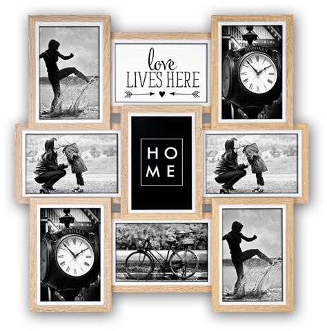 - Fráma grianghraf atá oiriúnach do 9 ngrianghraf de 10x15 cm