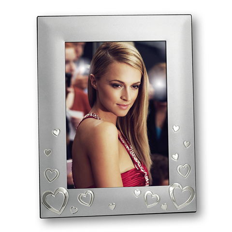 The is a photo frame that is suitable for 1 photo. You can place 1 photo of 13x18 cm in this list. Silver metal frame, with matte finish, decorated heart -shaped profile, elegant and classic style, velvet back, table version, available in different sizes, suitable for celebrating birthdays and anniversaries, ideal for valuable gifts, love theme. The total dimensions, including the frame, amount to 18.6 x 23.6 cm (LXB)