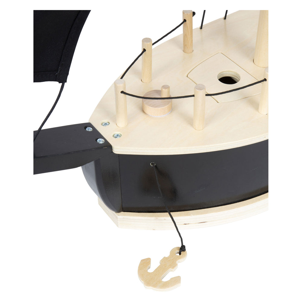 Ez a részletgazdag kalózhajó, amely erős fából készült, tökéletes a fantáziadús játékhoz. Sok autentikus részletet tartalmaz, köztük egy tágas kétárbocos hajót, egy gumicsónakot két hajlító babának, egy cápát, egy papagájt, egy kincsesládát, egy ágyút, két hordót, egy deszkát és egy menő kalózzászlót. A kötelek segítségével minden vitorlát fel lehet emelni, akárcsak egy igazi hajón. Az ágyú három filc ágyúgolyót lő a levegőben az extra szórakozás érdekében!