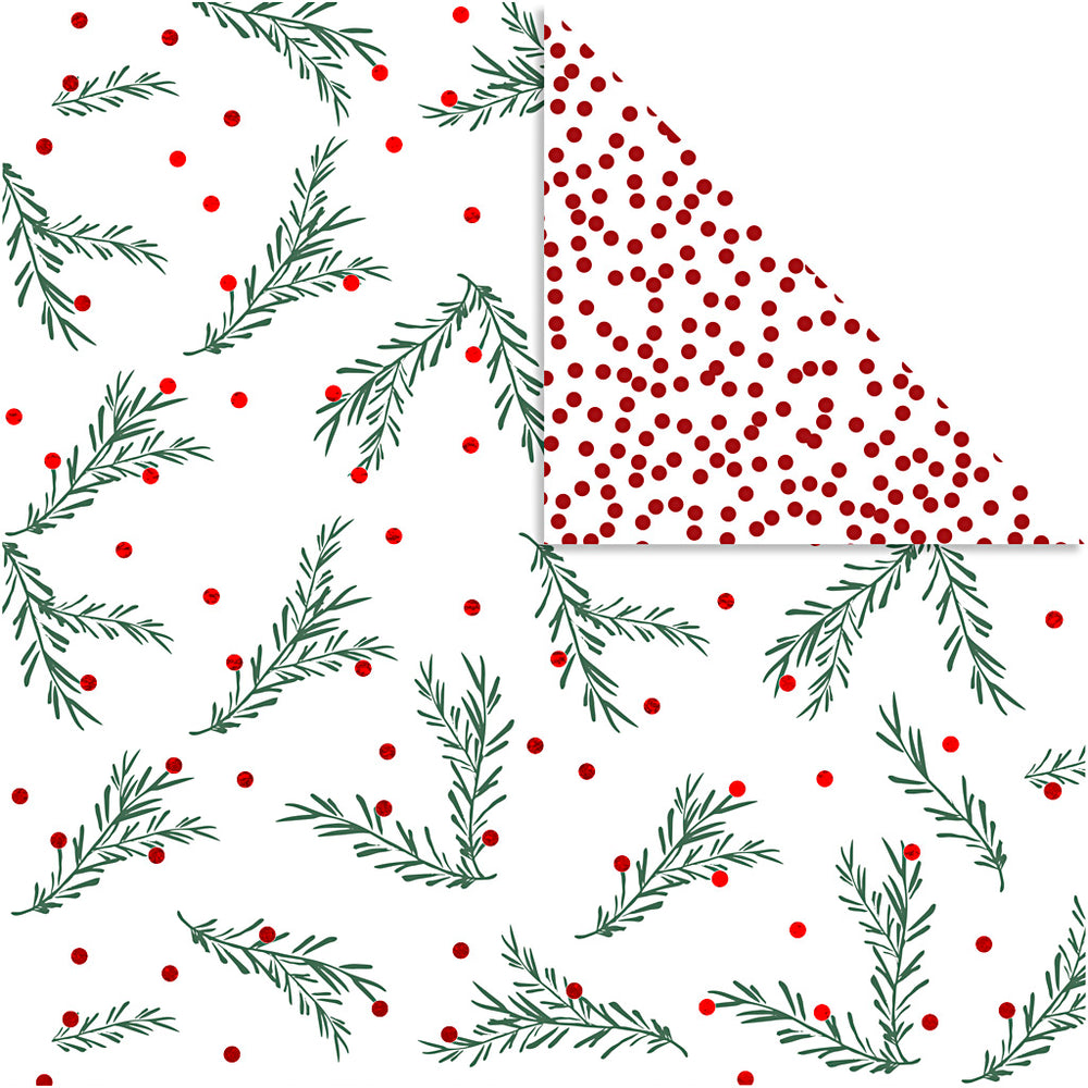 Vivi Gade design paper, branch and dots, sheet 30.5x30.5 cm, 180 g, gold, green, red, white, 3 sheets 1 box