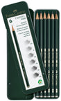 Matita dal design classico e di ottima qualità. Perno di alta qualità, incollato al legno senza rompersi. Facile da affilare. Rilascio potente, economico nell'uso. Adatta per scrivere, disegnare tecnicamente, fare schizzi, tratteggiare: la matita giusta per tutti gli utenti. Valigetta da 6 pezzi in varie durezze: HB/B/2B/4B/6B/8B.