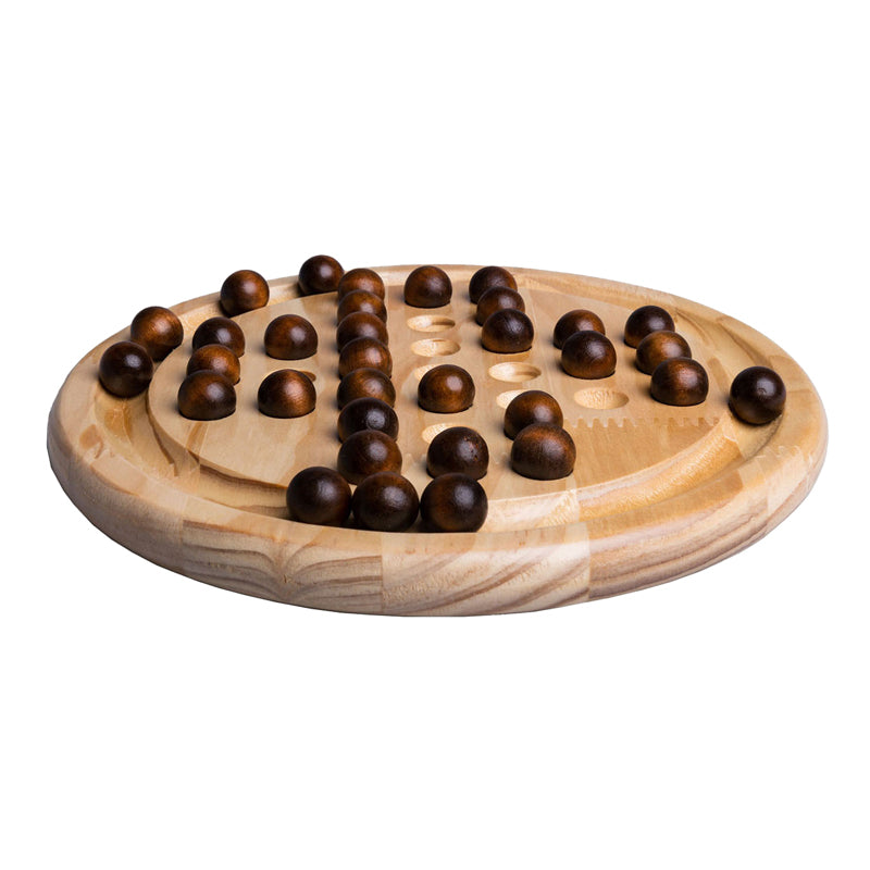 Clown Games Gioco da tavolo solitario in legno. Colpendo una biglia ogni volta, devi cercare di lasciare solo una biglia al centro alla fine. Riesci a risolvere il puzzle? Pratico: il tabellone da gioco rotondo in legno ha un anello all'esterno. Puoi posizionare tutte le biglie che hai eliminato lì dentro. Contenuto: tabellone da gioco solitario in legno con diametro di 22 cm, 33 biglie. Un ampio manuale in 6 lingue può essere trovato su clowngames.nl. Viene fornito in una scatola a colori. Adatto sia a bambini che ad adulti: 1 giocatore dai 6 anni.