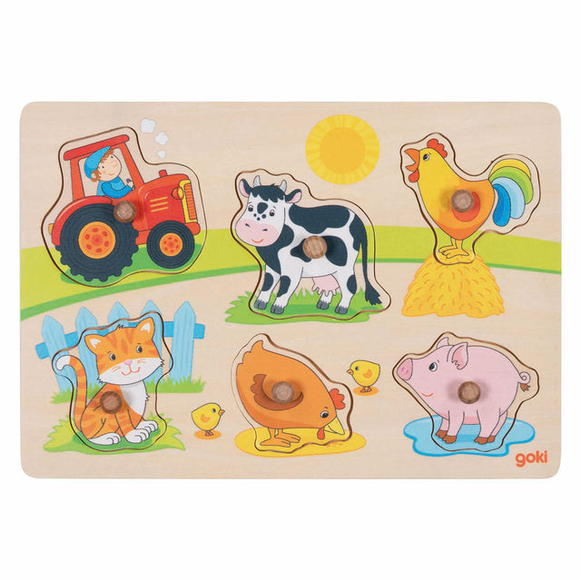 Goki houten noppenpuzzel op de boerderij, 6st.