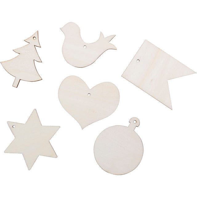 Wooden figures for decoration, size 6x6 cm, 24 pieces in 1 box