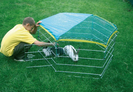 Konijnenren buitenren 6 hoekig met beschermnet