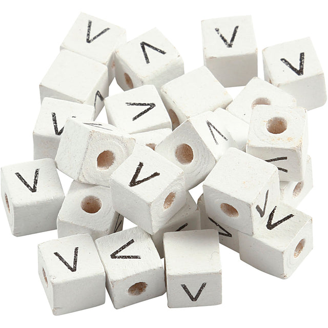 Creativ company letter beads, v, size 8x8 mm, hole size 3 mm, white, 25 pieces in a box