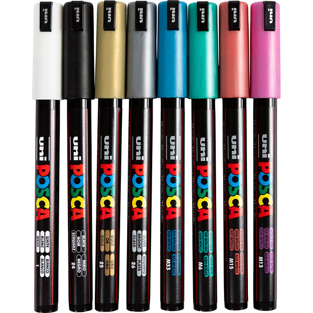 Uni-posca posca marker, afm pc-1mr, lijndikte 0,7 mm, extra-fijn, metallic kleuren, 8 div 1 doos