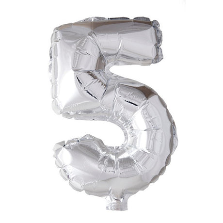 Globos folie ballon nummer '5' zilver 40cm