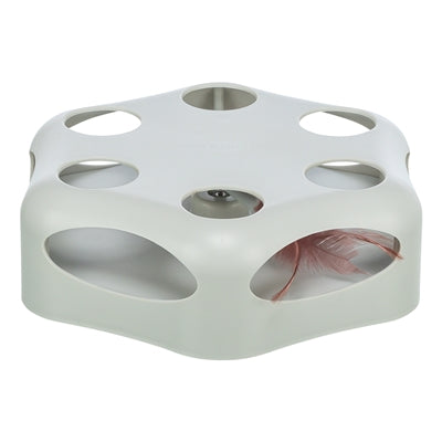 Et ass en interaktivt Spillsaachen fir virwëtzeg Kazen. D'Fréijoer am Zentrum beweegt sech onberechenbar zréck an zréck, stoppt heiansdo a verännert sech zoufälleg Richtung - perfekt fir d'Juegdinstinkt vun Ärer Kaz ze stimuléieren. D'Spillsaach kann mat klenge Belounungsbehandlunge gefëllt ginn fir extra Motivatioun. Dank de Gummi Féiss bleift et stabil beim Spillen. Et schalt sech automatesch no ronn 15 Minutten aus. Operéiert op 3 AA Batterien (net abegraff).