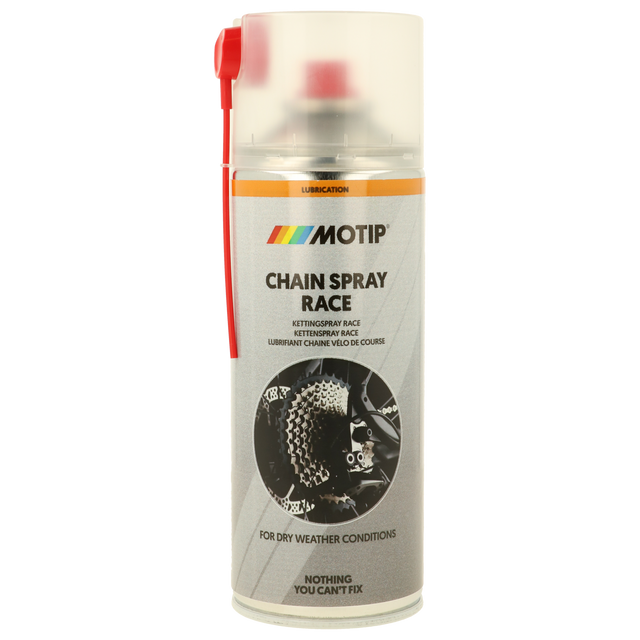 Motip Cycling Halskette Spray 400ml ass eng (dréchen) Schmier mat Keramik Partikelen fir Ketten a Gears vu Vëloen ze behandelen. Kette Spray Sport ass am meeschte gëeegent an dréchene Konditiounen a kaum all Dreck. D'Kettespray verhënnert datt d'Droen a Schutz géint all Wetter Aflëss. Dout ass et esou Waasserrepellenten an de Pray deen gezielt huet. 360 ° Kräiz.