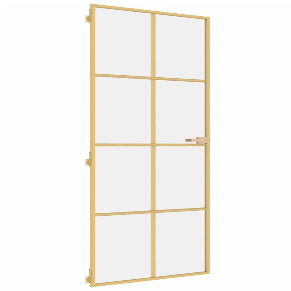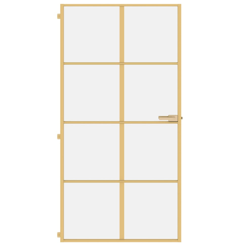 Vidaxl bannent Dier schmuel 102.5x2010.5 cm Häerteg Glas an Aluminium Gold Referenz a gëtt geschéckt soubal et zréck op Lager ass.