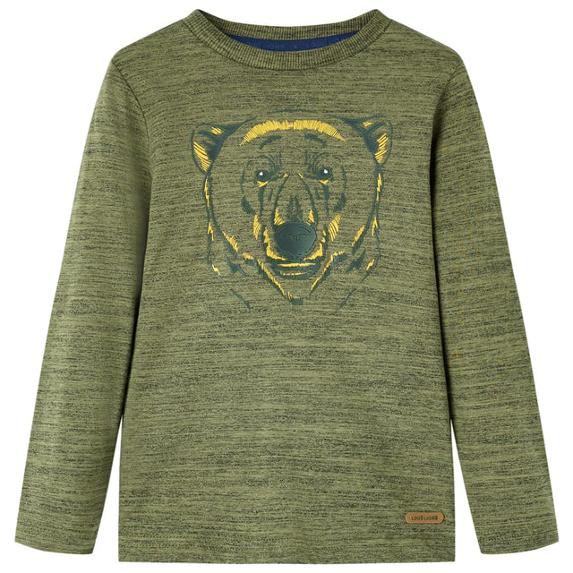 Vidaxl Kanner Shirt mat laangen Ärmelen 128 gemëscht Kaki -Colored