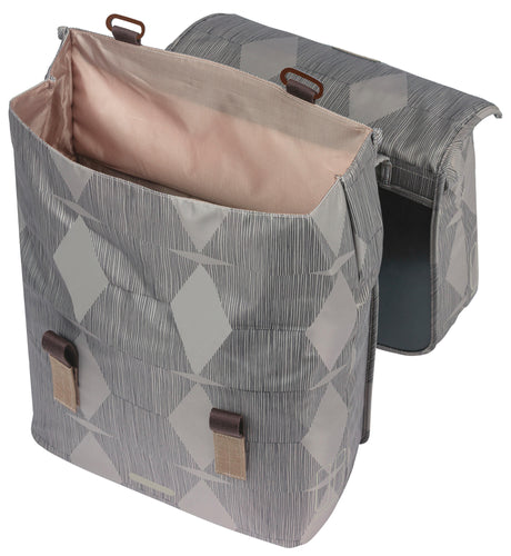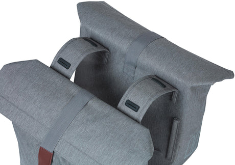 Basil City Double bicycle bag gray, water-repellent, suitable for e-bikes, reflective, 28-32L