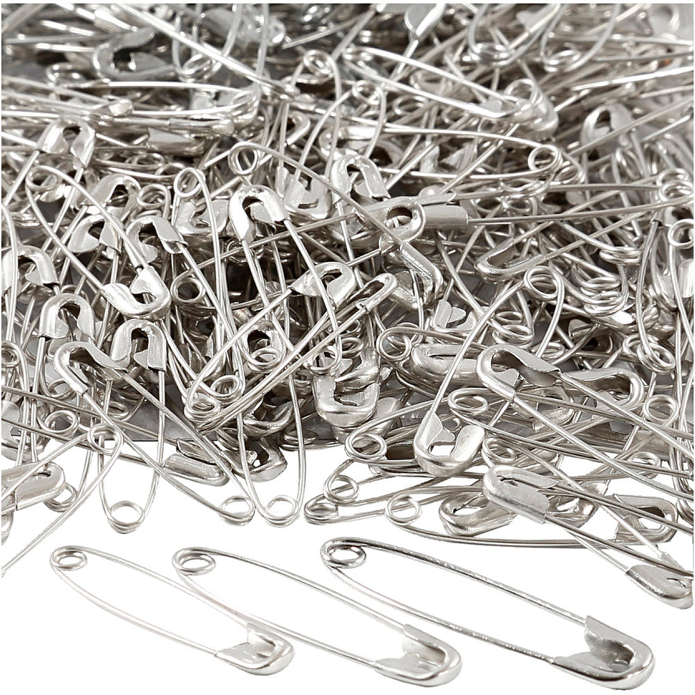 Creativ company safety pins, l: 28+31+36 mm, thickness 0.7-0.8 mm, silver, 600 pieces 1 box