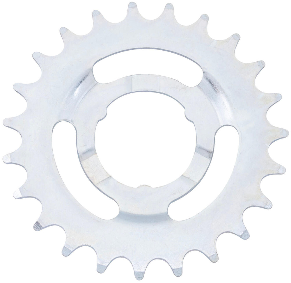 23 tands, passend voor 3-/ 4-/ 5-/ 7-/ 8-speed naafversnellingen 1/2" x 3/32", gegalvaniseerd, voor terugtrapnaven / starre naven, SRAM, Shimano (geen 5 versnellingen)Sturmey Boogschutter Gekarteld, materiaaldikte 2 mm Niet geschikt voor e-bikes!