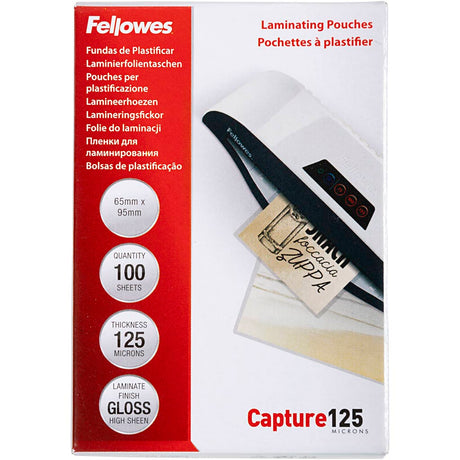 Laminating pouches, size 65x95 mm, thickness 125 my, clear, 100 pieces in a box