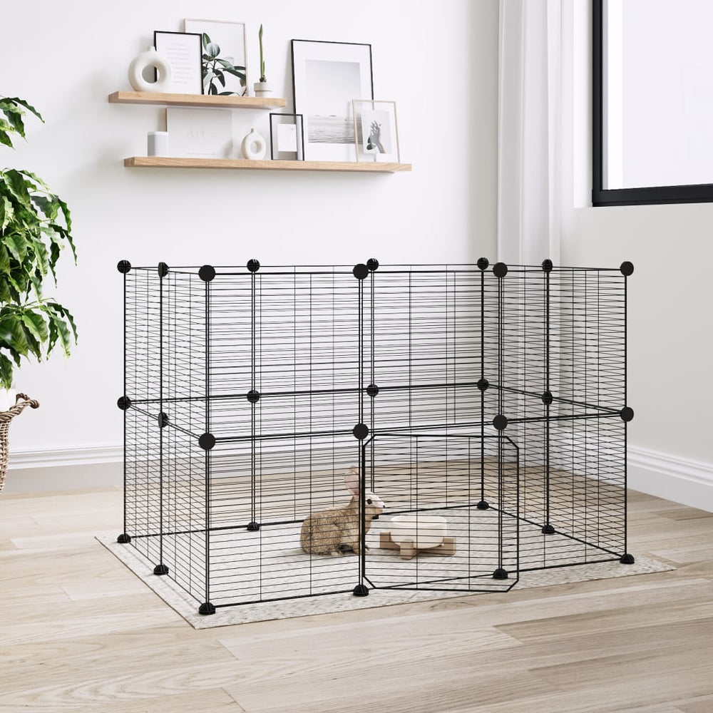 VidaXL Pets Cage With Door 20 Panels 35x35 Cm Steel Black