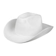 De Boland cowboyhoed 'Rodeo' is een witte hoed van synthetisch vilt met een comfortabele pasvorm voor volwassenen. Geschikt voor een hoofdomtrek van 59 cm.