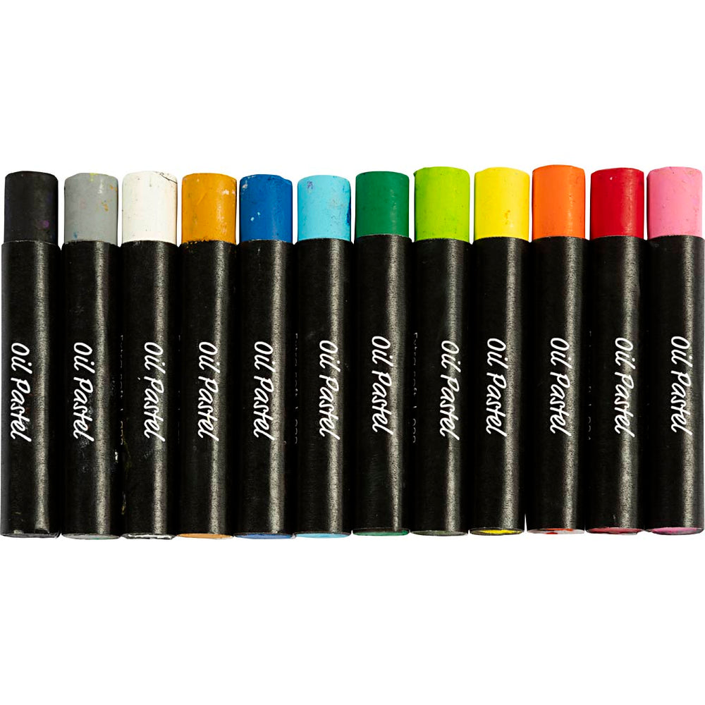 Creativ company oliepastels, l: 7 cm, dikte 11 mm, standaardkleuren, 12 stuk 1 doos